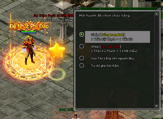 - Lưu ý : Hành trang cần phải có 5 ô trống để nhận vật phẩm