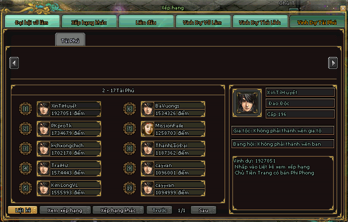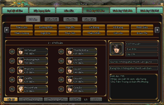 1. VINH DỰ TÀI PHÚ 2. VINH DỰ VÕ LÂM 3. HƯỚNG DẪN NHẬN THƯỞNG TOP Các huynh đệ vào trang để xem kết quả đua top : https://trangchu.kt1vn.com Nhận code về NPC hỗ trợ - Đạo Hương Thôn sử dụng.